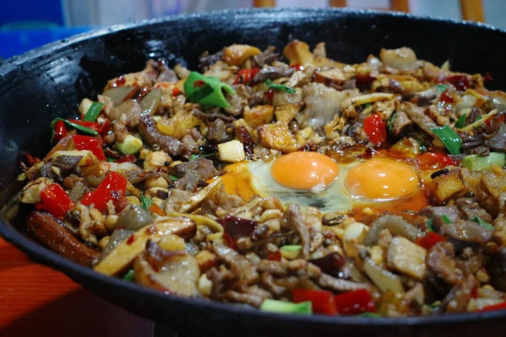除此以外湘西铁板烧也很有特质,自选食材,热吵杂闹炒上一大锅。
