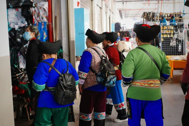 刚走进去我就一秒变成“周迅脸”,止不住地在心里惊叹好多东谈主啊!并且这里不管是摊主照旧过来采购的阿叔阿婆,好多都是衣服当地的苗族衣饰,看着终点的有嗅觉。