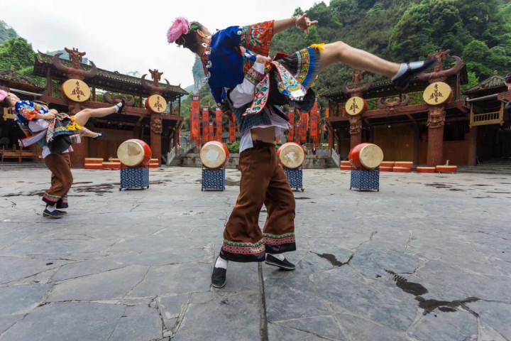 寨子的中心处还有个小广场,泛泛每天会有固定的时分上演苗族歌舞,最出名的是苗族荧惑,动作很有劲量,节拍感强。