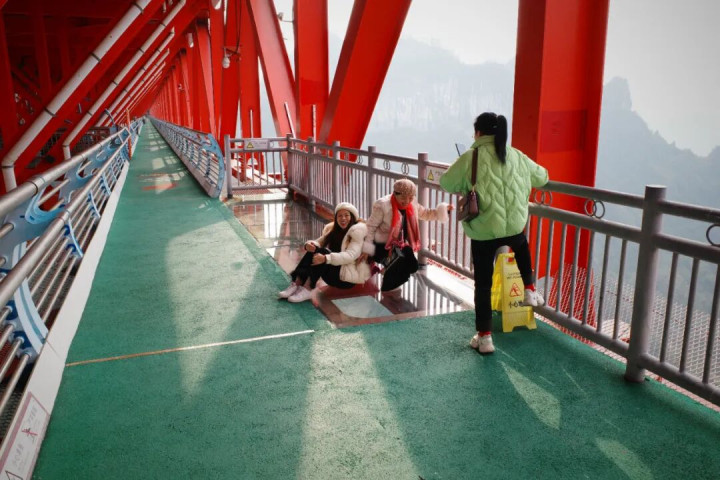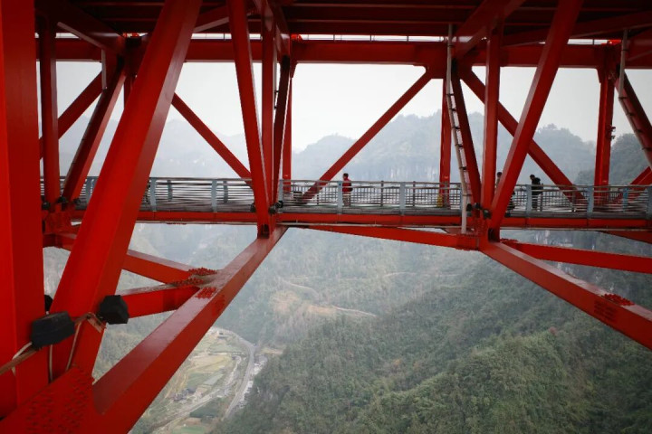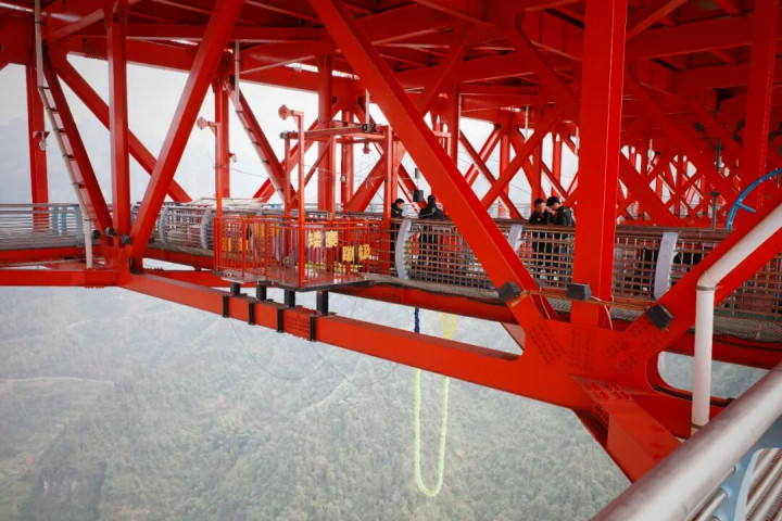矮寨大桥最中枢的体验,即是走上大桥基层的不雅光通谈。