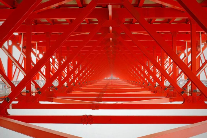 它不像普遍的桥那样“架”在地上,而是像一根巨大的钢索,径直从三百多米高的两座山头之间“甩”了往日。