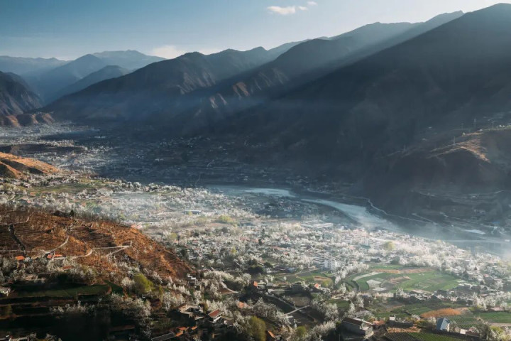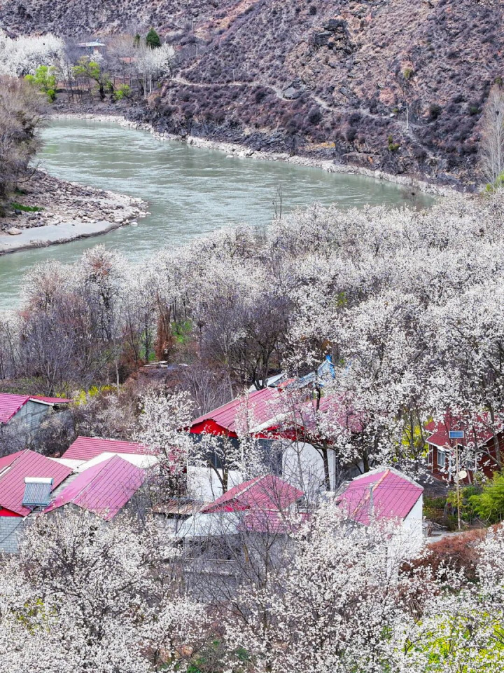 每逢三月,金川河谷两岸百里梨花争妍斗艳