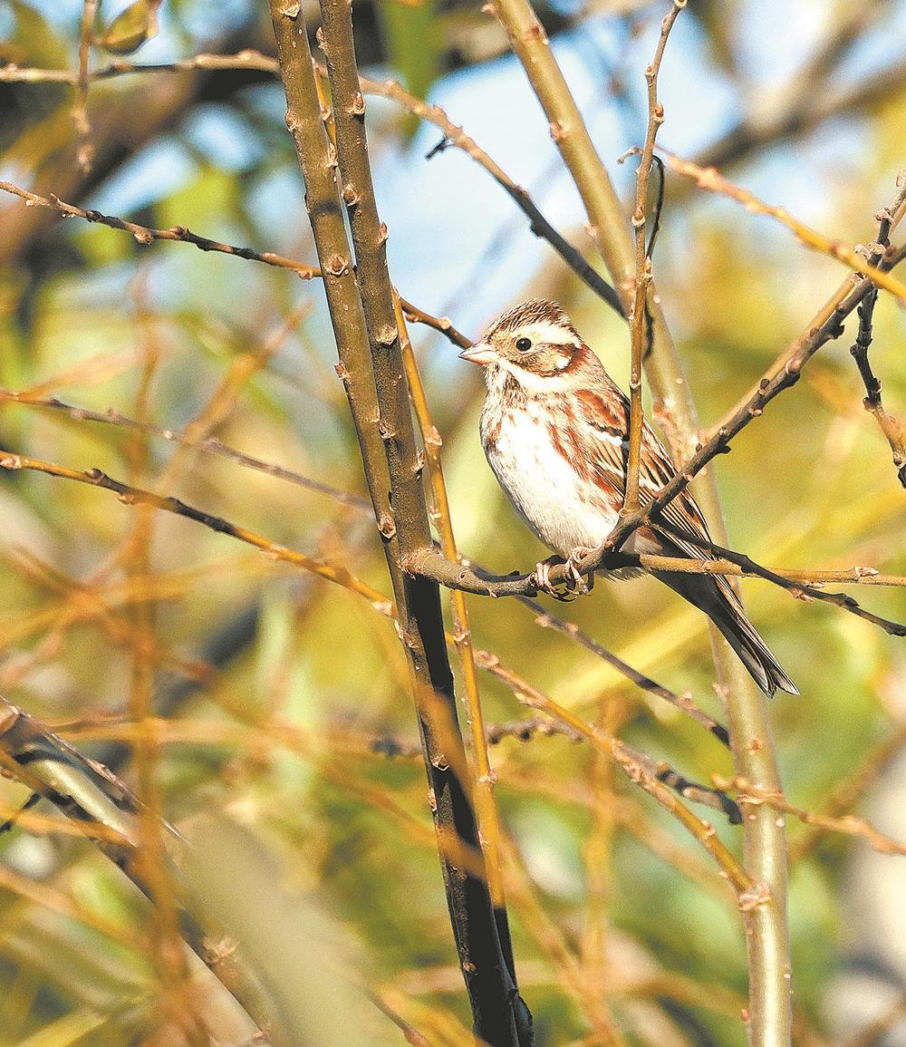 田鹀在树枝上栖息。