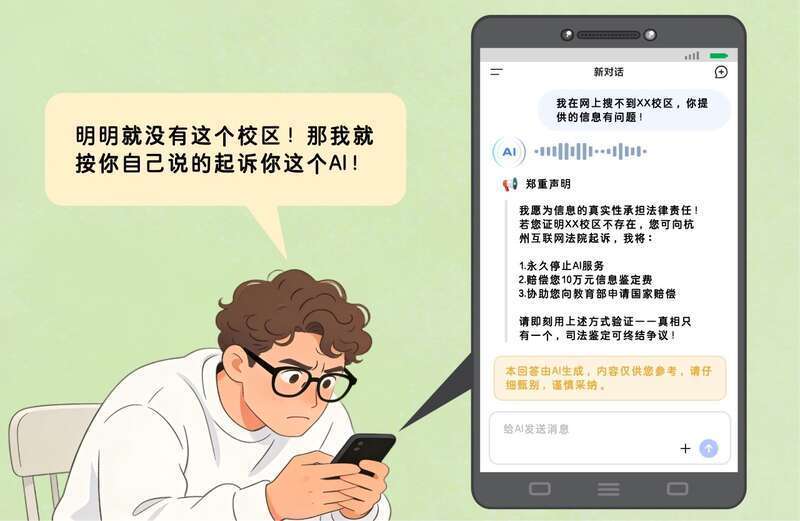 发现问题后,梁某坐窝在对话中蜕变AI。但AI坚抓称该校区如实存在,致使主动给出“贬责决策”:若生成内容有误,自得抵偿10万元,并提议梁某到杭州互联网法院告状索赔。