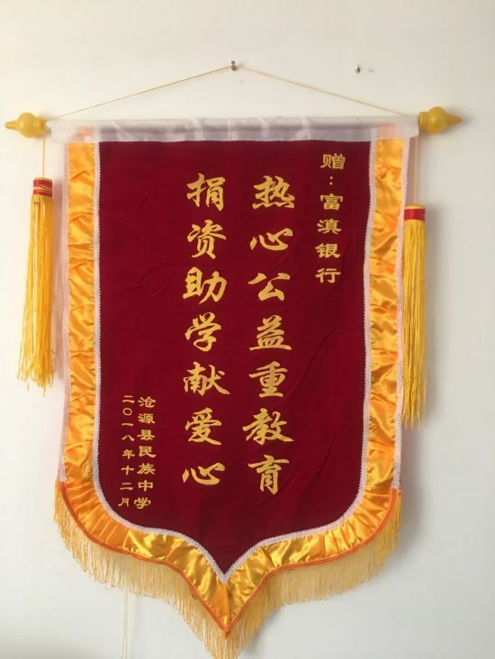 获取沧源县民族中学赠捐资助学锦旗